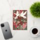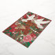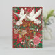 Beautiful painted doves surrounded by Christmas green foliage and flowers, hand lettered peace on earth in real foil. Original artwork by Caroline Bonne Müller