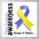 Join the fight against Down Syndrome with stand-out Down Syndrome awareness t-shirts, apparel, merchandise, and gifts featuring the text "Down Syndrome Awareness – Because It Matters" in varying fonts and an eye-catching multi-shaded blue and yellow Down Syndrome support ribbon arranged in a sure-to-get-noticed layout.