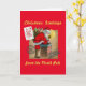 This vintage Santa Claus is going down the chimney with a bag full of toys. The design includes a North Pole and SPECIAL DELIVERY stamps. This card can be personalised and has a companion envelope that can also personalised.
