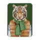 This design features a tiger winter ready wearing his down vest, green knit scarf and Christmas sweater.