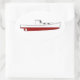 This nautical theme sticker celebrates boats from Downeast Maine, the heartland of the American lobstering industry. Depicted in this logo is a traditional wooden lobster boat with white hull and red bottom. Originating in Downeast Maine, these classic boats are found in coastal harbours from Canada to the Mid Atlantic. Maine lobster boats usually share the following traits; high, sharp bow, rounded bottom, deep keel, simple cabin, uncluttered deck, and low horsepower requirements.