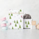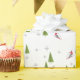 This modern giftwrap features a modern, simple pattern of downhill skiers in a winter scene with green pine trees and snowflakes. The perfect giftwrap for ski lovers!