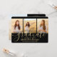 Share the joy of a high school or college graduation and invite family and friends to celebrate with these custom 4 photo collage black and gold invitations. All pictures and wording are simple to personalise. (IMAGE PLACEMENT TIP: An easy way to centre a photo exactly how you want is to crop it before uploading to the Zazzle website.) This template is formatted for a graduation party, but can easily be customised as an open house invite or announcement card. Simply change the text to include any details of your choice, such as parents' names, special honours, degree title, favourite inspirational quote, graduate's future plans or new address. If there's any text not wanted simply delete it. Design features a black background, faux foil mortar board cap, handwritten style script calligraphy, modern minimalist typography, and four photos of your choice, such as senior pictures or images from the commencement ceremony. Please note that gold is printed colour, not metallic foil. This elegant graduation invitation card is a trendy and chic way to begin your special day celebration. Congratulations to the graduate!