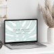 Island chic business logo design features a vintage style monstera leaf illustration in sheer seafoam green, with your name or company name and title overlaid in modern grey lettering. Perfect for vacation rental property managers or any island based business. This design can be purchased as an instant digital download for your use.