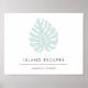 Island chic business logo design features a vintage style monstera leaf illustration in sheer seafoam green, with your name or company name and title overlaid beneath in modern grey lettering. Perfect for vacation rental property managers or any island based business. This design can be purchased as an instant digital download for your use.