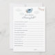 Blue and tan vintage travel themed baby shower 'Who Knows Mummy Best' downloadable game template featuring a watercolor illustration of a cute aeroplane with a party garland and clouds.