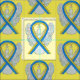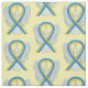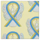 Awareness ribbon fabric material features the painting of a blue and yellow awareness ribbon angel art on a custom repeating fabric print. The yellow and blue awareness ribbon angel art fabric swatch print can be customised with personalised messages to make great cause merchandise or gifts for fundraiser clothing, awareness ribbon quilts, or other special awareness gift items for the cause awareness occasions.