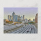 A shot of the downtown Atlanta skyscrapers, set against the foreground of the Interstate 85 running through the city near sunset on a Saturday night.