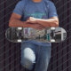 Skateboard featuring a street scene photo looking towards the Springfield Missouri downtown square. Park Central Street is part of the Historic Route 66, which you can see the historical sign on the street light to the right.
