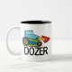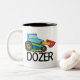 A bulldozer of blue, orange, red, and green with text that reads "Dozer" on T-shirts, tote bags, sweatshirts, magnets, buttons, bibs, bodysuits, and more, perfect for kids who love big construction vehicles!