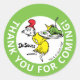 Show your appreciation with this charming thank you sticker! Featuring the friendly Sam-I-Am from Green Eggs and Ham, this sticker is a perfect way to add a sweet, final touch to your party favours or gift bags. Its whimsical design and clear "Thank You for Coming!" message will delight guests as they leave, making them feel extra special. These stickers are a great way to tie your party's theme together and send everyone home with a little piece of Seussical magic.