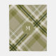 Drab olive plaid fleece blanket with monogram features a diagonally orientated masculine loden, olive and beige plaid with white and pale blue-grey accents and custom monogram - by katz_d_zynes