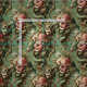 A snarling, serpentine figure coils through a bouquet of lavish peonies and delicate orchids, cloaked in mint-toned decadence. With horns crowned and claws adorned in florals, this beast wears its elegance like armour. Ideal for upholstery, drapery, or garments that fuse monstrous grandeur with opulent charm.