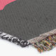 A quality printed throw has its advantages. This is a much finer weave throw than its loopier cousins, and though lighter, it is worth the investment for custom room accessorizing. The back is much prettier than the typical brown, and the fringe on the long sides very vivid, the selvage nicely done. Before photographing, I washed the throw in cold water, delicate, with a thicker woven throw the same size. On tumble dry low, this throw was dry in half the time as the other. This is a very practical quality if you use throws for furniture covers or to wrap up in frequently. The sleekness of the fabric makes it a great layer for accenting or protecting without the feeling of sitting on too much stuff. Perfect for napping or when you feel a light chill coming on. The color printing is beautiful and on this fabric, matched the design and color of my Photoshop image. This is an advantage for blending room fabrics and colors. The fringe on the short sides prints the colors from the design image and therefore varies from the side fringe. I streaked a white fractal line through the plaid pattern to give the illusion of weaving. This printed as crisp as an illusory thread, and put some white in the short side fringe, showing another advantage of print vs loomed- for artistic purposes, line lines, detail, and color integrity can be planned and preserved. My loomed throws have color limitations and more of a needlepoint texture. Print throws reproduce an exact image. The throw felt a little stiff straight out of the package, but this went away in the first delicate wash. Of course I searched the wash water for ink or bleeding and there was none.