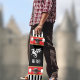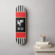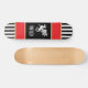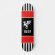 This medieval inspired skateboard features a white dragon and your initials on black, with black and white stripes, and accented with red gold trim. The gold is a simulated printed color and does actually contain foil or metal. Harken back to the Middle Ages with this cool looking skateboard. Make sure to type your intials in the Personalize section.