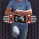 Dragon Black White Striped Monogram w Red Gold Skateboard
