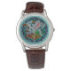 The watch looks really great! Very sharp and well done. The leather band is really nice, though for a man's watch I think it should be longer. Unfortunately, it isn't big enough for my husband's wrist but I will get a replacement because he is very excited to wear it!