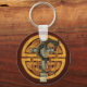 A round, traditional Celtic ornament as a background with a celtic stone cross and a green eastern dragon winding around it. A unique fantasy art design, and a great gift for dragonlovers and fantasy art fans.