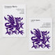 A business card template with a bold heraldic dragon symbol. Company name, business type and address on the front with name, job title, telephony, web and email addresses on the back, with the same layout.