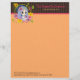This custom company letterhead stationery features a cute blue faery with her purple pet dragon framed by a wreath of pink, yellow and purple lilies. An adorable way to communicate with customers and clients. Buy some with matching business cards, envelopes, envelope seals, postage stamps, and address labels to create a truly unique set of business stationery for your company!