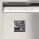 A dragon lurks in a cave deep underground. Fridge magnet with a black and white customisable design for you to personalise with your own text, pictures and ideas. An original ink drawing by Jess Perry.