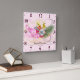 Dragon Fruit and Pink Orchid Tropical Calligraphy Square Wall Clock