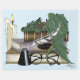 A cute green little dragon sleeping on books with his teddy bear, a candle, ink well, feather pen, and reading glasses in a backdrop of blue