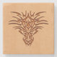 Dragon head engraved on wood effect stone coaster