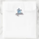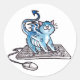 A blue, impish dragon cat stands on a keyboard. This cartoon design shows a kitty doing what kitties do best; causing trouble and entering gibberish into your computer!
