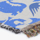 A quality printed throw has its advantages. This is a much finer weave throw than its loopier cousins, and though lighter, it is worth the investment for custom room accessorizing. The back is much prettier than the typical brown, and the fringe on the long sides very vivid, the selvage nicely done. Before photographing, I washed the throw in cold water, delicate, with a thicker woven throw the same size. On tumble dry low, this throw was dry in half the time as the other. This is a very practical quality if you use throws for furniture covers or to wrap up in frequently. The sleekness of the fabric makes it a great layer for accenting or protecting without the feeling of sitting on too much stuff. Perfect for napping or when you feel a light chill coming on. The color printing is beautiful and on this fabric, matched the design and color of my Photoshop image. This is an advantage for blending room fabrics and colors. The fringe on the short sides prints the colors from the design image and therefore varies from the side fringe. I streaked a white fractal line through the plaid pattern to give the illusion of weaving. This printed as crisp as an illusory thread, and put some white in the short side fringe, showing another advantage of print vs loomed- for artistic purposes, line lines, detail, and color integrity can be planned and preserved. My loomed throws have color limitations and more of a needlepoint texture. Print throws reproduce an exact image. The throw felt a little stiff straight out of the package, but this went away in the first delicate wash. Of course I searched the wash water for ink or bleeding and there was none.