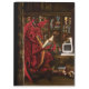 Red dragon sitting in his computer den reading a book. In behind him there are podcasting equipment and a computer on his desk with all of his treasures around him.