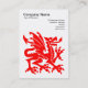 A business card template with a bold heraldic dragon symbol. Company name, business type and address on the front with name, job title, telephony, web and email addresses on the back, with the same layout.