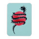 Cool dragon magnet with a digital illustration of a monster - chimera between a dragon and a snake with spikes all over its body curled around a red ball.