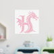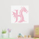 Dragon Styled Letter H, Dragon Alphabet, Monogram Foil Prints