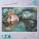 Infuse your next DIY project with bold fantasy energy and steampunk elegance. This decoupage tissue paper design showcases a fierce woman in black leather and gold detailing, crowned with steampunk goggles and floral accents—her arm wrapped in a stunning blue and gold dragon tattoo. Ideal for junk journalling, furniture makeovers, fantasy-themed crafts, and mixed media art with a rebellious edge.