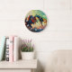 Wall Clock, 25.4 cm Round Black Wooden Frame
