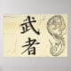 Add a little asian decor to your room with this parchment inspired poster featuring the Kanzi script for warrior.