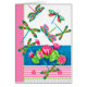 Little helicopters with their filigree wings dart among lilies by waterside locations. They really represent Summer's halcyon days. This summery card with Dragonflies and Lilies in deep blue, aqua, green and magenta colours. Perfect for Summer wishes and greetings. It also makes a lovely card for Birthdays, Thank You, Sympathy and for many other events and sentiments