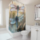 Two blue dragonflies hover over water and reeds on this beautiful shower curtain.  Perfect for anyone who loves nature and the outdoors.