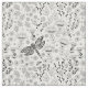 Dragonfly and various flowers and leaves. Doodle vector pattern in black and white.
