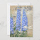 Matching Formal Reception invite for receptions with a restricted guest list or events at a separate location. For the nature lover who is planning an outdoor, country, rustic garden style wedding theme, has a western barn venue location or simply loves flowers! DESIGN: The background and border artwork for this elegant, formal yet somewhat rustic wedding invitation invite is hand painted by Audrey Jeanne Roberts. The background is an aged, worn, distressed crackle finish style parchment. Beautiful spires of deep blue delphinium flower spires reach for the sky in various hues of blue from sky to periwinkle. A white Matilija poppy flower (often called "fried egg flowers" or "paper flower poppies") was painted in watercolors, live from Audrey Jeanne's own gardens. A Blue Morpho butterfly hovers over a Damselfly Dragonfly that is resting on the poppy. On the reverse side is the same image without the semi-transparent velum look and border. A complete, matching wedding invitation collection set is available for all your wedding, bridal shower or other special occasion and party needs. COLOR SELECTION: This design features natural tans, browns and beige tones with cream, white, light blue and sky blue.
