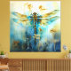 This captivating depiction of a dragonfly in blue and yellow tones, gracefully navigating over a sea of matching flowers, would make an exceptional addition to a man cave or a similarly styled space. Hung against a backdrop of deep, rich tones such as charcoal or navy, the artwork would stand out, creating a focal point within the room. The dynamic movement of the dragonfly's wings and the vibrant floral colors would inject energy and vitality into the space, while the overall elegant yet vibrant esthetic would complement the masculine ambiance of a man cave. The artwork serves not only as a visual centerpiece but also as a conversation starter, offering a unique blend of nature-inspired beauty within a stylish and curated setting.