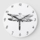This clock features a unique design of a dragonfly, with numbers that can be removed if desired.