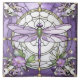 Dragonfly Purple and White Stained Glass Flower Tile