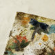 Gorgeous multi-coloured dragonflies flit on a rustic inspired background. From my original collograph print.