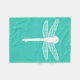 Dragonfly Silhouette On Turquoise Fleece Blanket