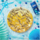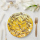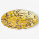 Gorgeous golden dragonflies flit on a summery bright yellow background.