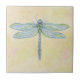 Square tile with a blue and green dragonfly on it, great for bathroom or kitchen.