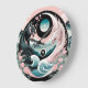 Dragons Floral Mountain Pink Sage Teal Large Clock