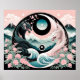 Black and White yin yang inspired, Pale pink and sage green with a hint of teal, floral mountain landscape